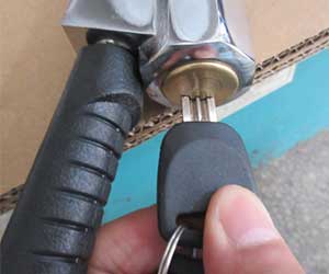 -The double-lock cylinder design is strong and anti-theft. The interior of the hook is solid steel, challenging, and anti-saw. It can simultaneously lock the steering wheel, brake, pedal, and clutch.